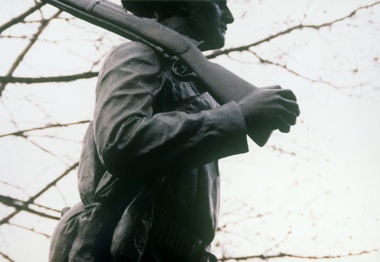People from historic Greenfield MA, part of the Greenfield Clock, carved in high