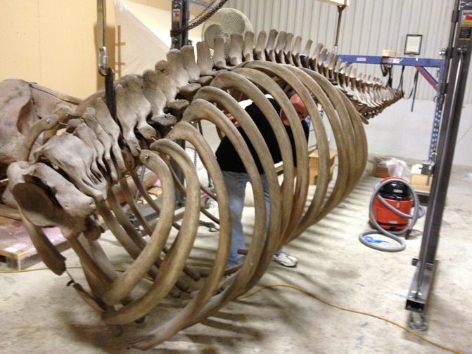 New England Aquarium has a 100 year old right whale skeleton that had been cut