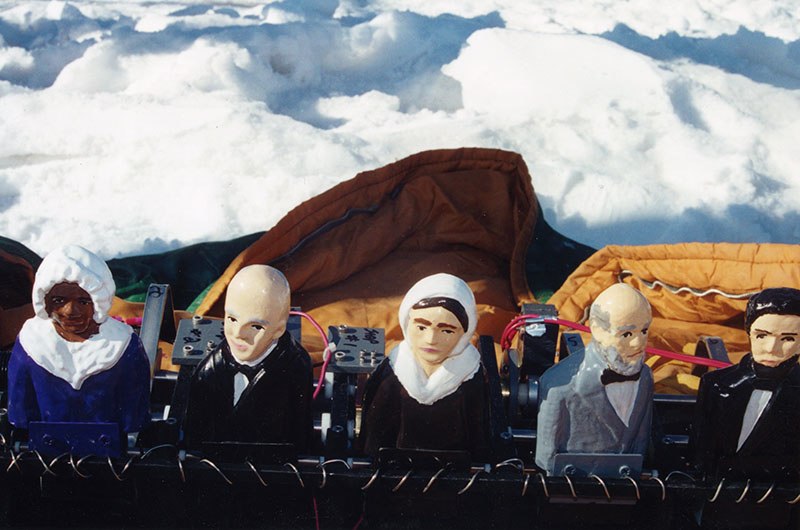 station. The folk art train has twelve historic figures, selected by the