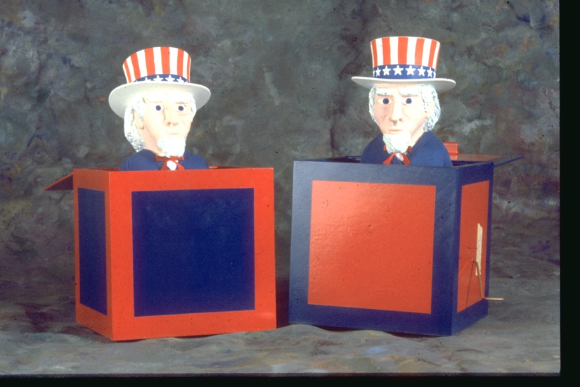 had to pop up. Carved foam, plastic box, spring loaded.