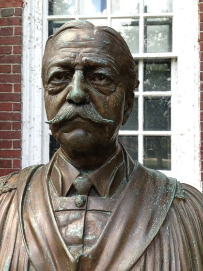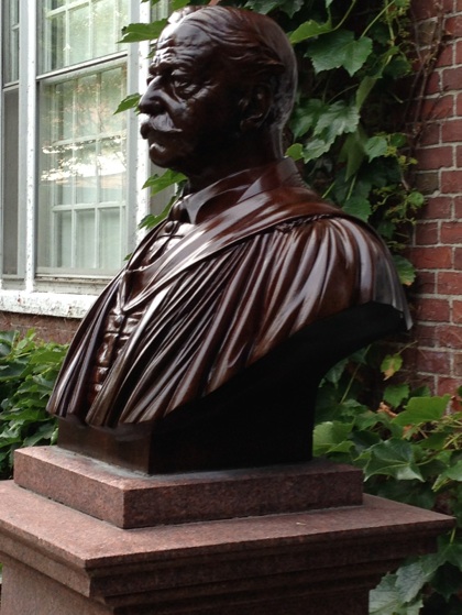 A bust of Abbot Lowell located in the courtyard at Lowell House. The bust was