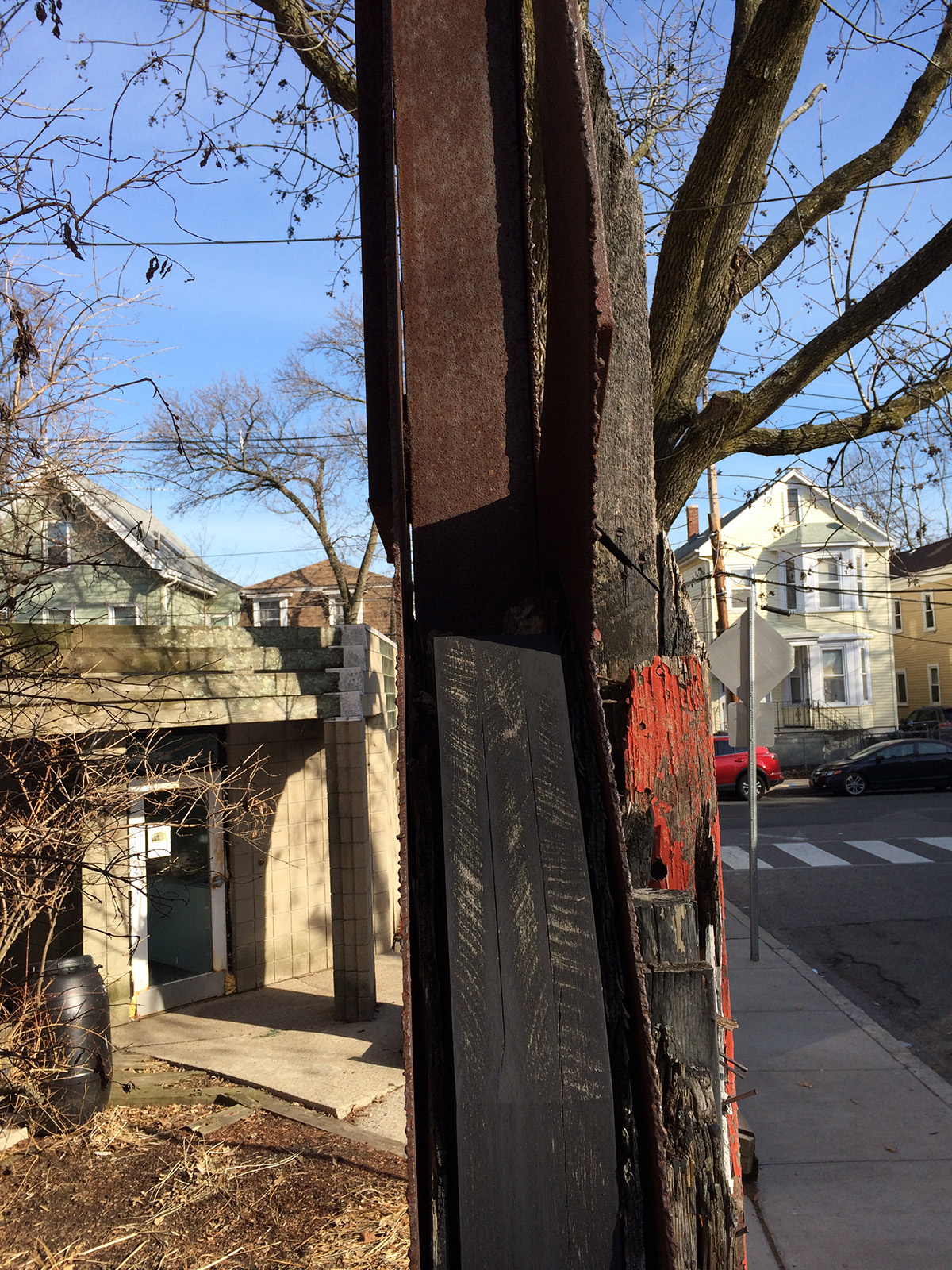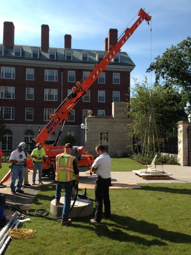 Tree at Harvard University. The sculpture had to be moved to a temporary site