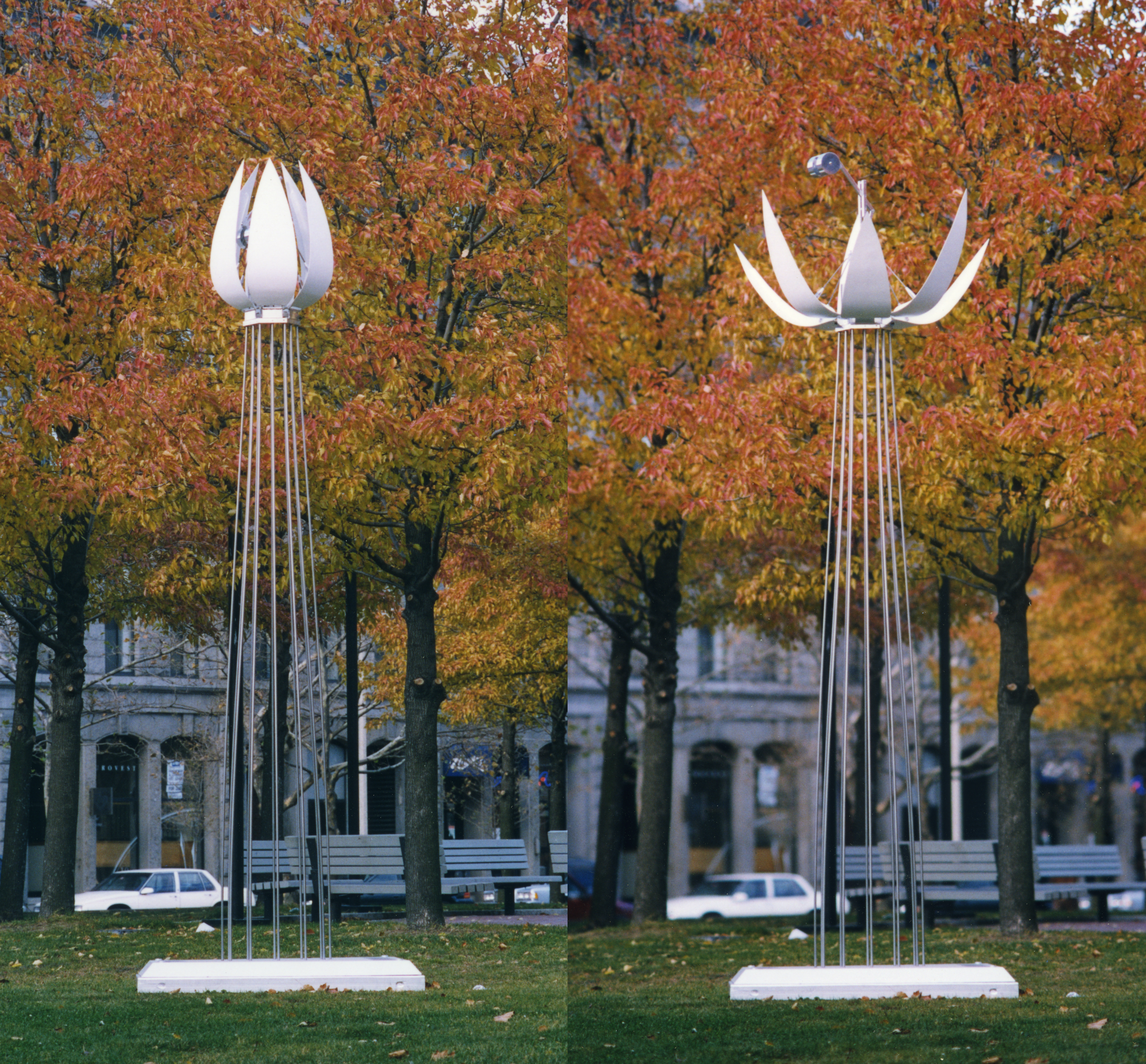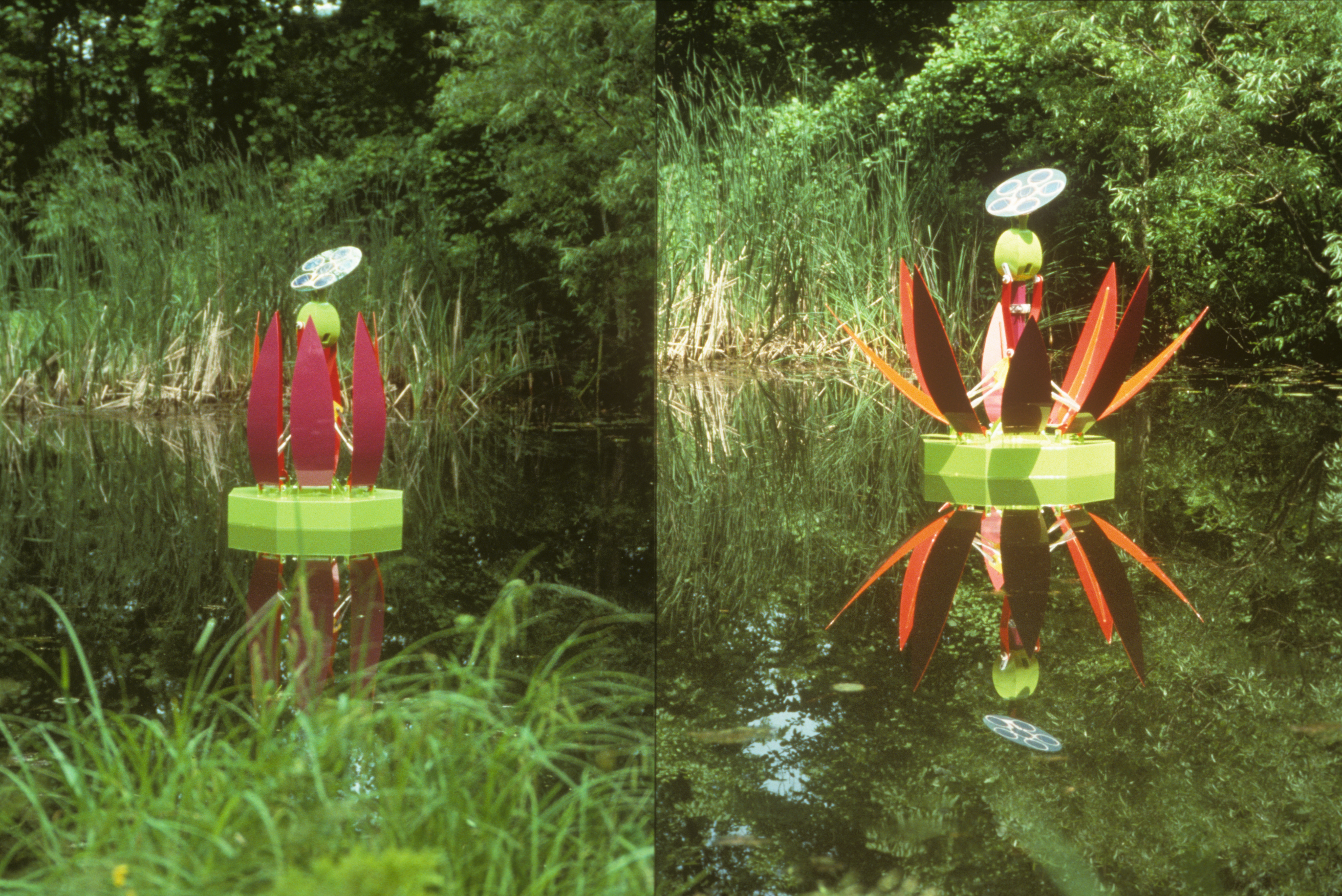 WATER LILY (closed/open) solar cells, motor, painted aluminum, stainless steel;