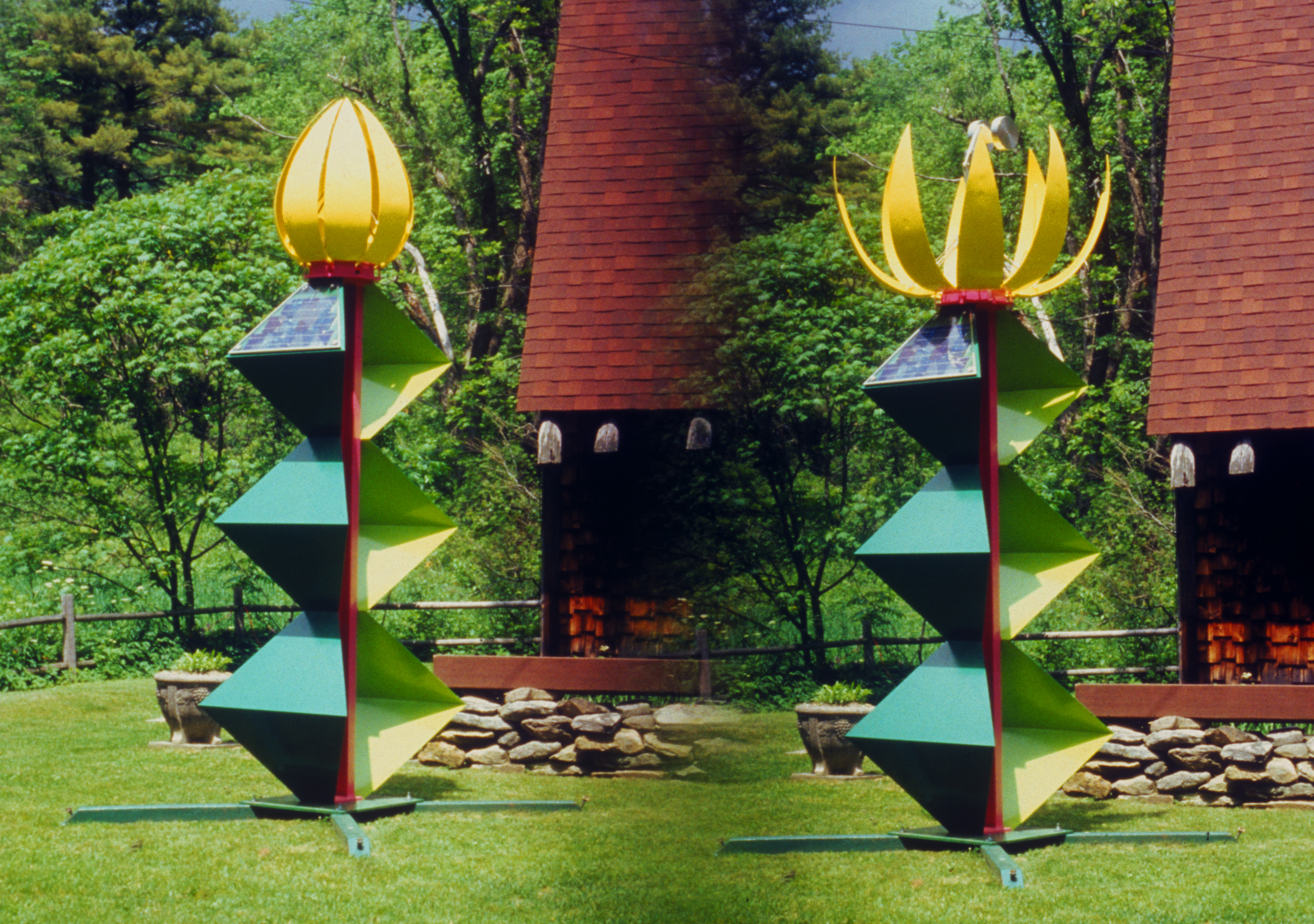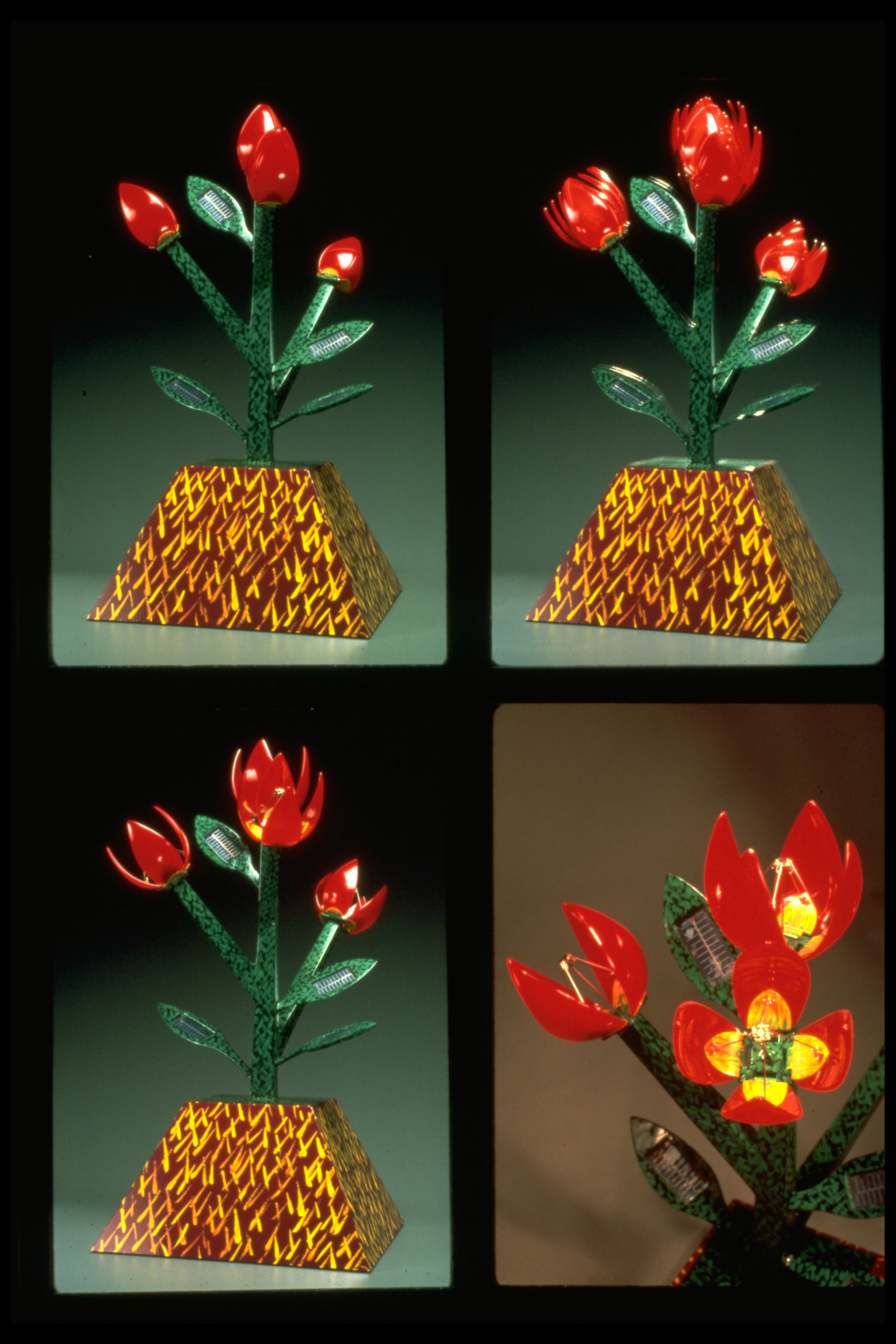 solar technology, The Solar Flower Blossom sculptures are colorful and plant-like, in that